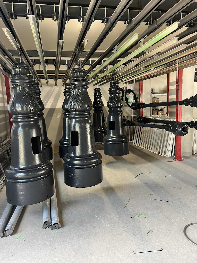 - Zabezpieczanie antykorozyjne oraz dekoracyjne przez malowanie proszkowe (piec o wymiarach 6000x2000x2000 mm)